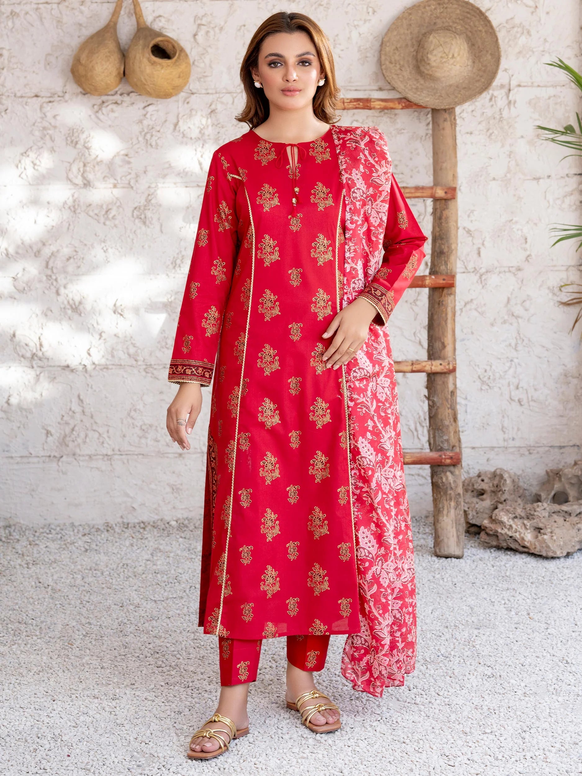 Gold paste print dupatta 2.5 M