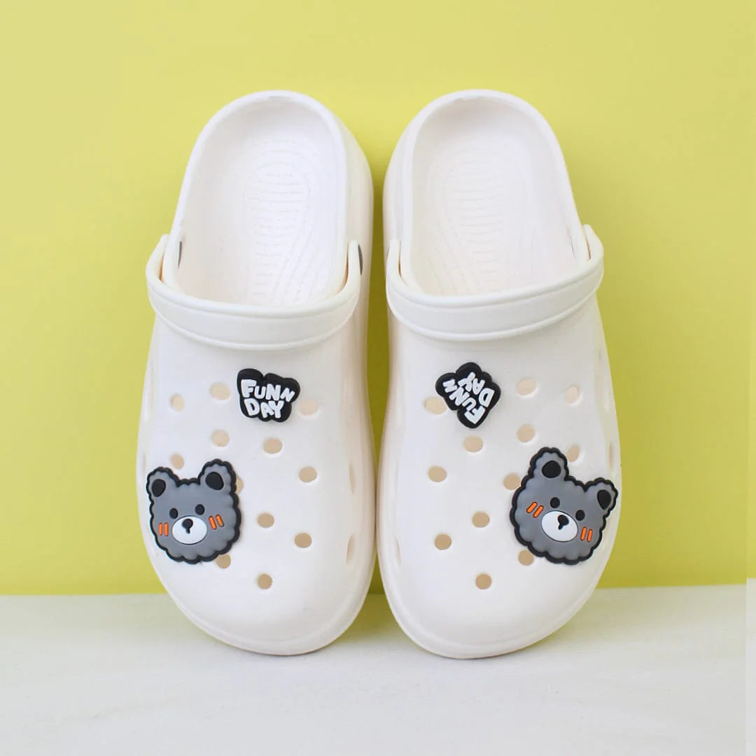 These Little People premium quality clogs feature an attractive white-themed design. Made with high-quality materials, they provide long-lasting comfort and style. Perfect for everyday wear and special occasions, these clogs are a must-have for any fashion-forward individual. Upgrade your footwear collection with these stylish and practical clogs.