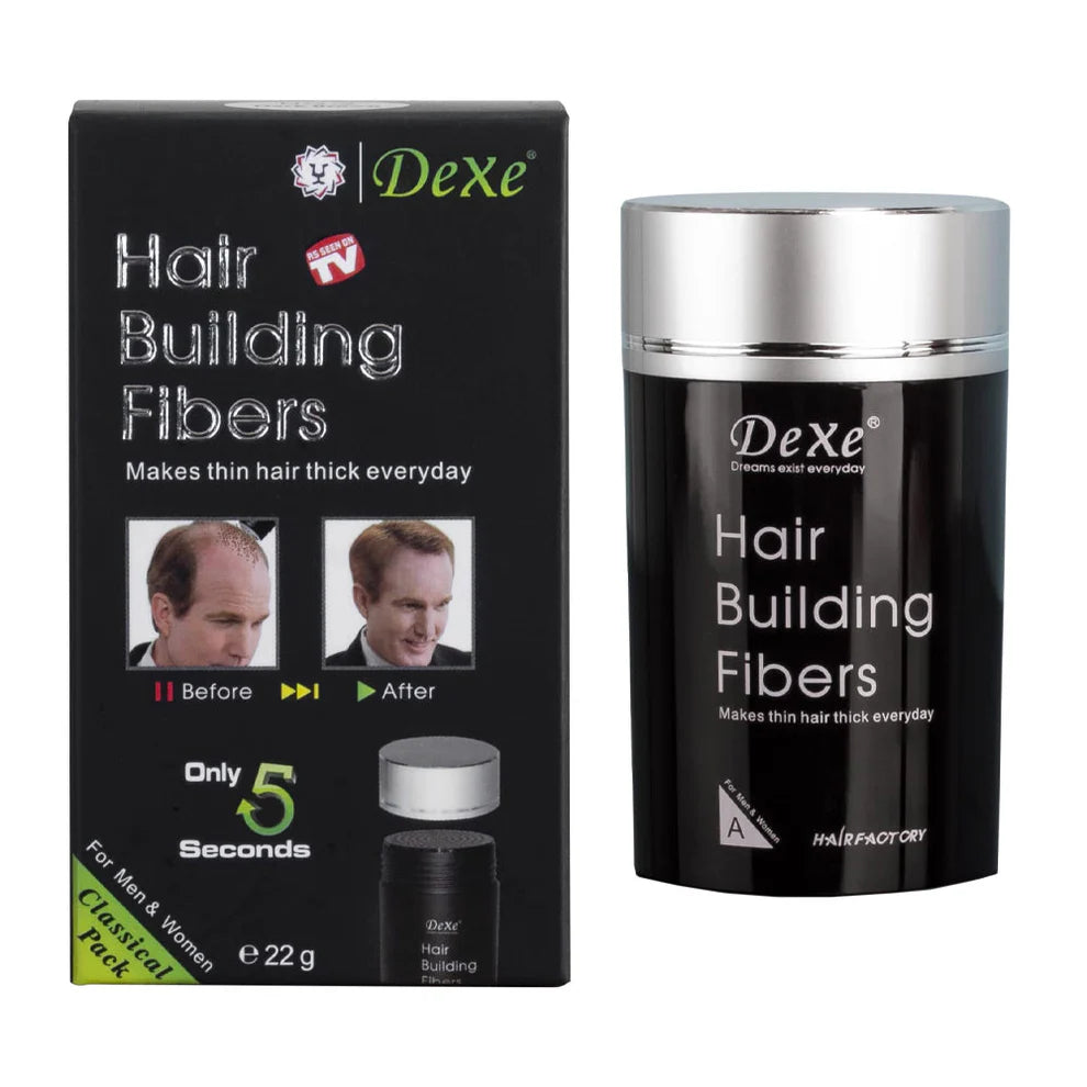 DEXE Hair Building Fibers blends with your existing hair to instantly give you a fuller look. Formulated with natural Keratin fibers, it's perfect for thinning hair or bald spots to cover up with a natural boost of volume. Get a thicker, fuller head of hair in seconds with DEXE!