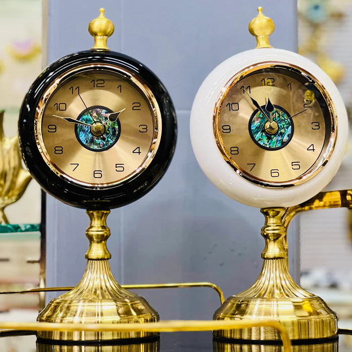 Elegant Metallic Table Clock features a sophisticated design with a sleek, modern finish, perfect for enhancing any home or office decor. Its timeless style combines functionality and beauty, making it an ideal addition to your decorative collection.