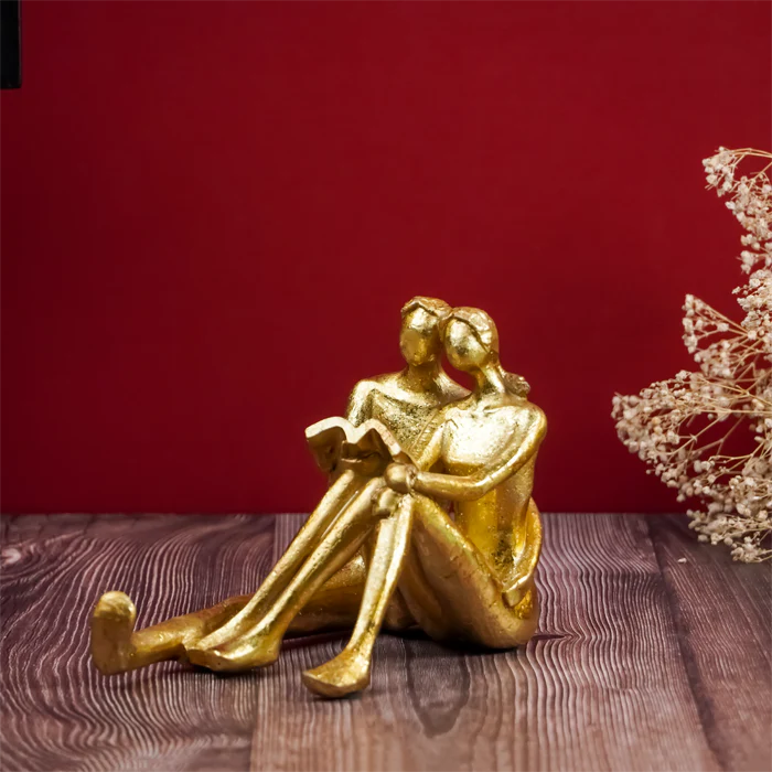 This Elegant Golden Couple Reading Book Sculpture exudes sophistication and warmth. Crafted with intricate details, it features two figures immersed in a book, symbolizing knowledge and connection. A perfect addition to elevate any decor, ideal for modern interiors.