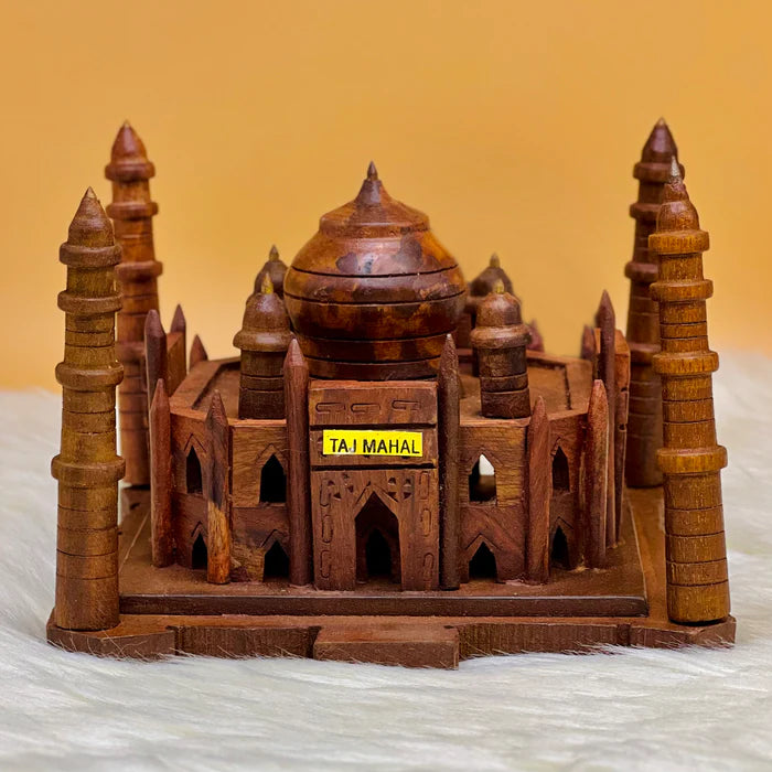 Enchant your decor store with our Handmade Carved Wooden Taj Mahal. Meticulously crafted, this exquisite replica exudes architectural elegance and cultural richness. A captivating addition that brings a touch of historical grandeur to any space.