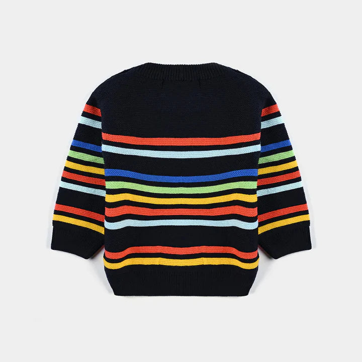 Elevate your little man's wardrobe with this Roman Stripes sweater. With its darker tones and hint of vibrant stripes, it adds a touch of sophistication to any outfit. Perfect for chilly days, it's designed to keep your baby warm and toasty while looking effortlessly stylish.