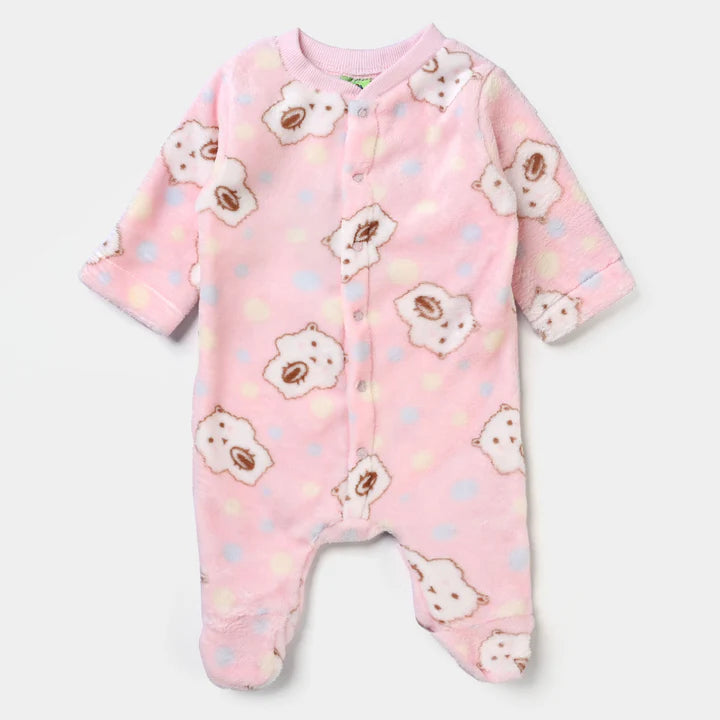 INFANTS UNISEX SHERPA ROMPER BEAR & DOT-PINK