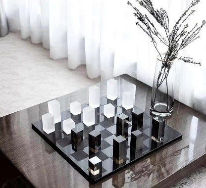 Modern Glass Chess Table is a sophisticated and elegant addition to any home. Featuring a sleek glass surface and often accompanied by clear and frosted glass pieces, it combines functionality with modern aesthetics. Perfect for both playing and displaying, it adds a touch of luxury and intellectual charm to your decor