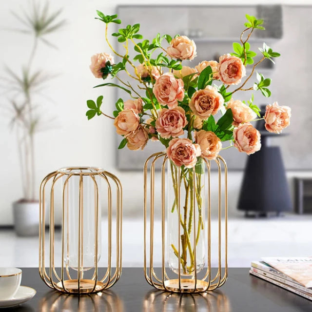 Add a touch of elegance and sophistication to your home with this modern metal vase decor piece. This sleek and stylish vase is made of high-quality metal with a shiny silver finish that reflects light beautifully. The vase has a geometric design that gives it a contemporary and minimalist look. Whether you fill it with fresh flowers, dried branches, or leave it empty, this vase will enhance any room with its charm and grace. This vase measures 12 inches in height and 6 inches in diameter, making it a perfect size for any space. Order this modern metal vase decor piece.