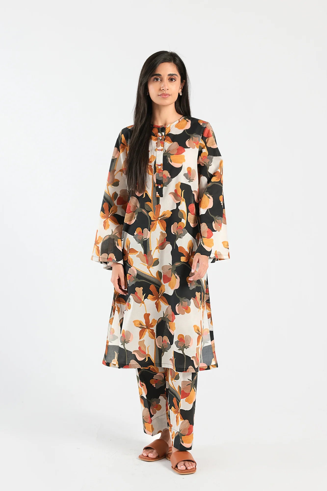 Look resplendent this season in this graceful ensemble illustrating a gorgeous composition. This 2 piece outfit features a contemporary shirt adorned with captivating artistic and floral designs printed in deep black, rust, mustard and grey tones. Enhanced with trendy add ons at front placket, this chic shirt is paired with a matching trouser, a great addition to your everyday wardrobe.