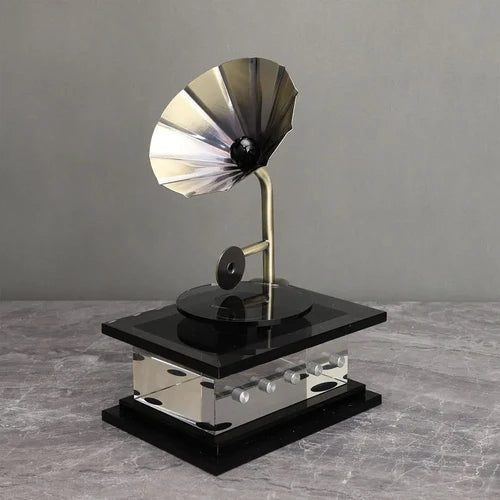 A retro classic style phonograph, featuring a vintage wood finish and brass horn, adds timeless elegance to any space. Perfect for decor stores, it blends nostalgic charm with functional design, creating a stylish centerpiece for home or office settings.