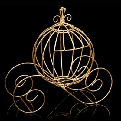 Add some fairy tale magic to your wedding or party with these pumpkin carriage table decor. These charming miniatures are made of metal and painted in gold, silver, or white. They can hold candles, flowers, or candies to create a whimsical center piece.