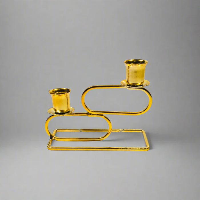 Elegant shiny gold candle stand that adds a touch of luxury to any decor. Perfect for holding pillar or taper candles, its sleek design enhances any space, creating a warm ambiance. Ideal for special occasions or everyday elegance in your home.