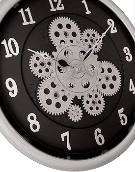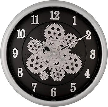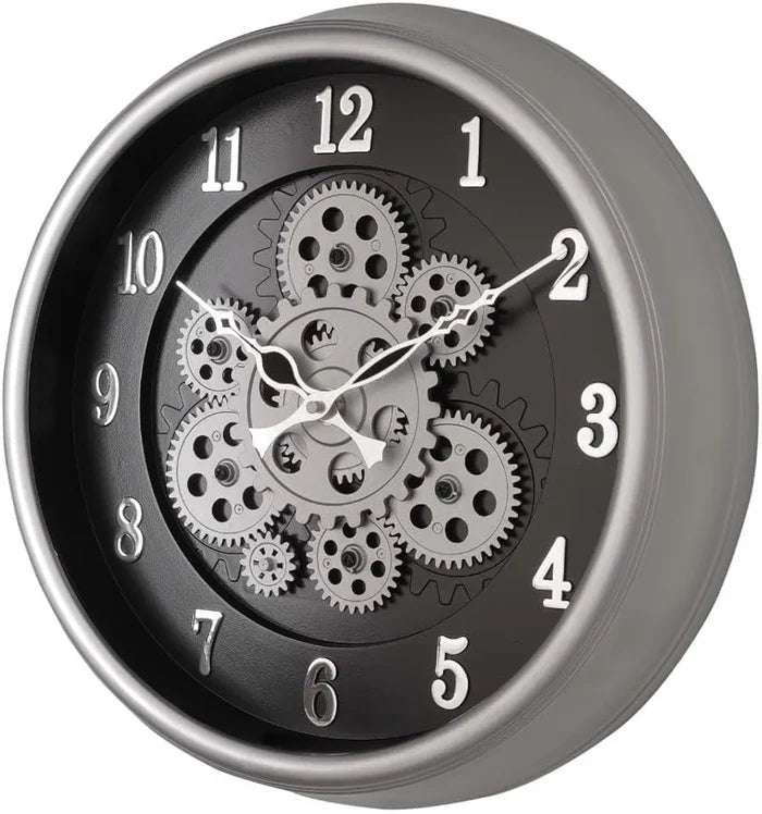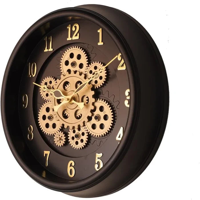 The Umi Moving Gear Wall Clock is a stunning, industrial-style piece for living room decor. Featuring visible moving gears, this unique clock adds a modern, mechanical charm, making it an eye-catching addition to any decor store display.