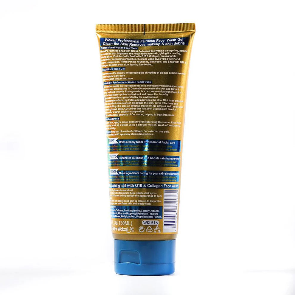WOKALI FACE WASH GEL SNAIL WITH Q10 N COLLAGEN IR 130 ML WKL
