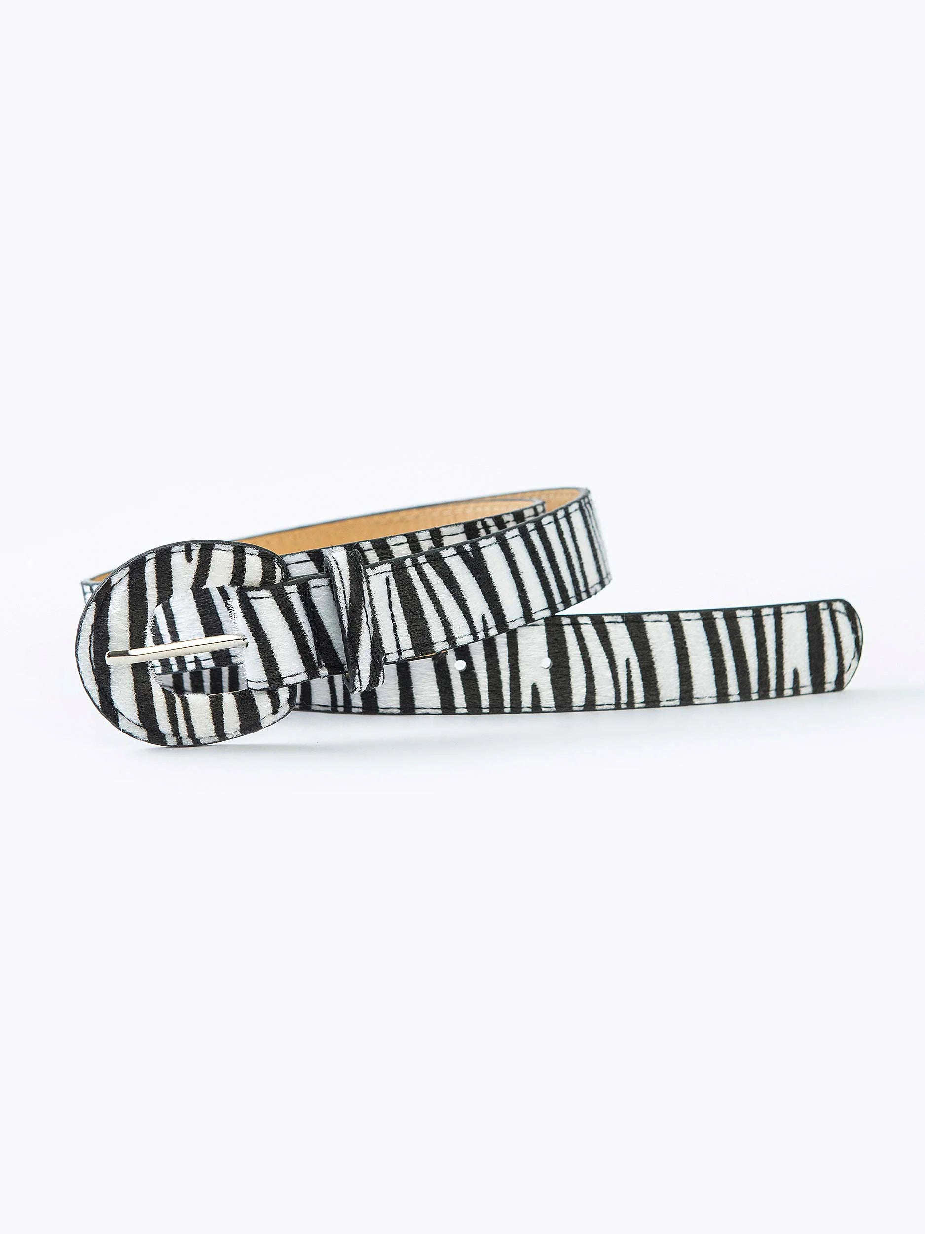 Belt with D buckle and fur texture with zebra print
